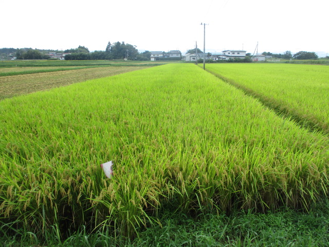 第6回の生育調査では穂から花が咲き、緑色が強かった交流田。
