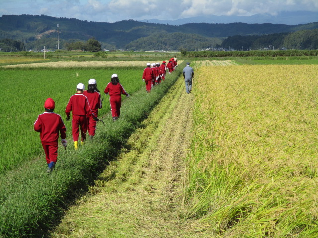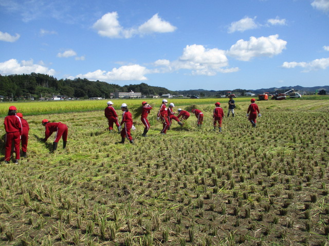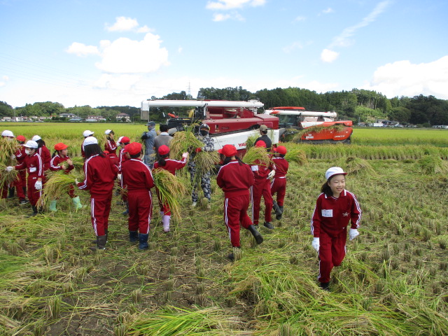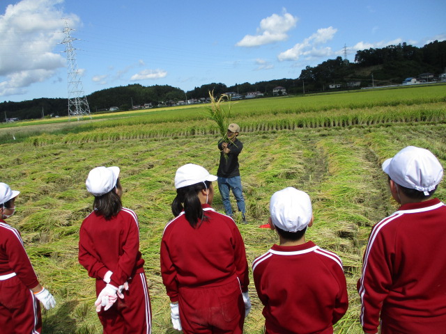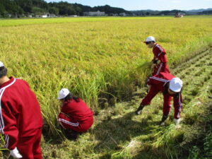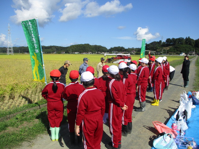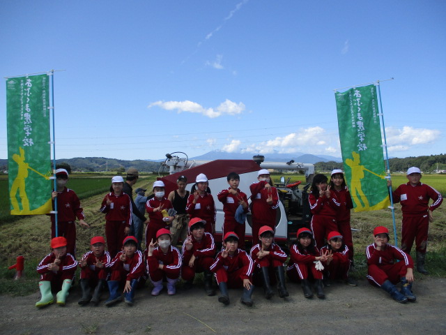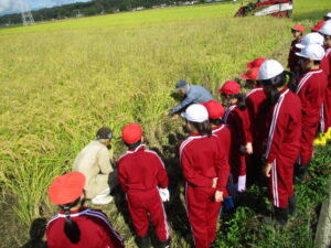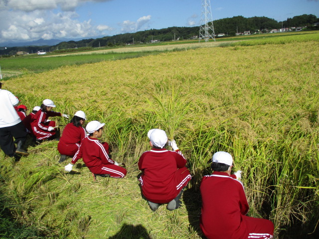 北郷小学校では9月26日(金)に、5年生20名で「あぶくま農学校」の稲刈り体験学習を行いました。