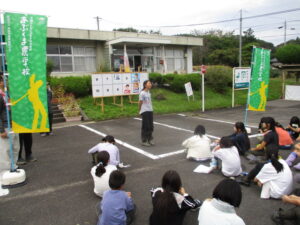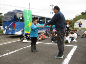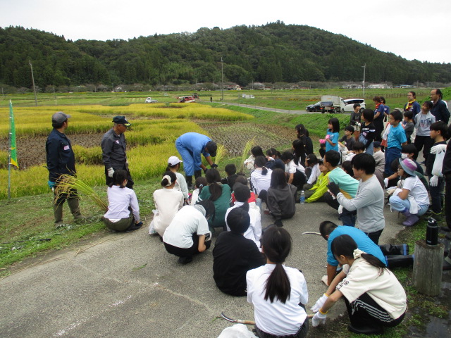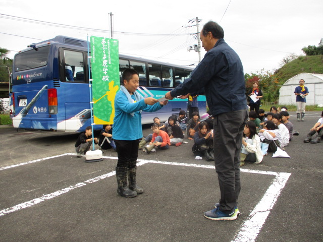 永井教育長から各校代表が稲刈り体験証を受け取り、3つの班の代表が稲刈りの感想を発表しました。