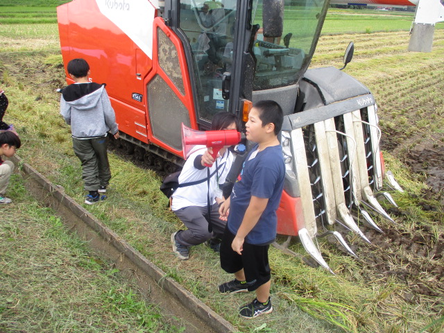 あぶくま農学校事務局の小湊事務局長から児童に稲刈り体験証が授与され、児童代表が稲刈りの感想を発表しました。