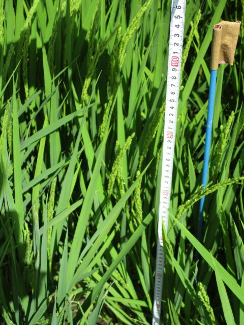 稲の半分以上から穂(ほ)が出ていることを確認しました。